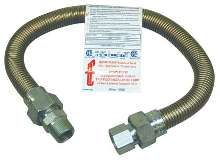 Appliance Connector, Flexible, Hose Material Stainless Steel, Overall Length 24 In., Max. Pressure 1/2 PSI, Connection Size 3/4 In., Fitting Material Steel, Fitting Type Male Thread, Application Appliance Connector, For Use With LP or Natural Gas, Includes Connector and Fittings