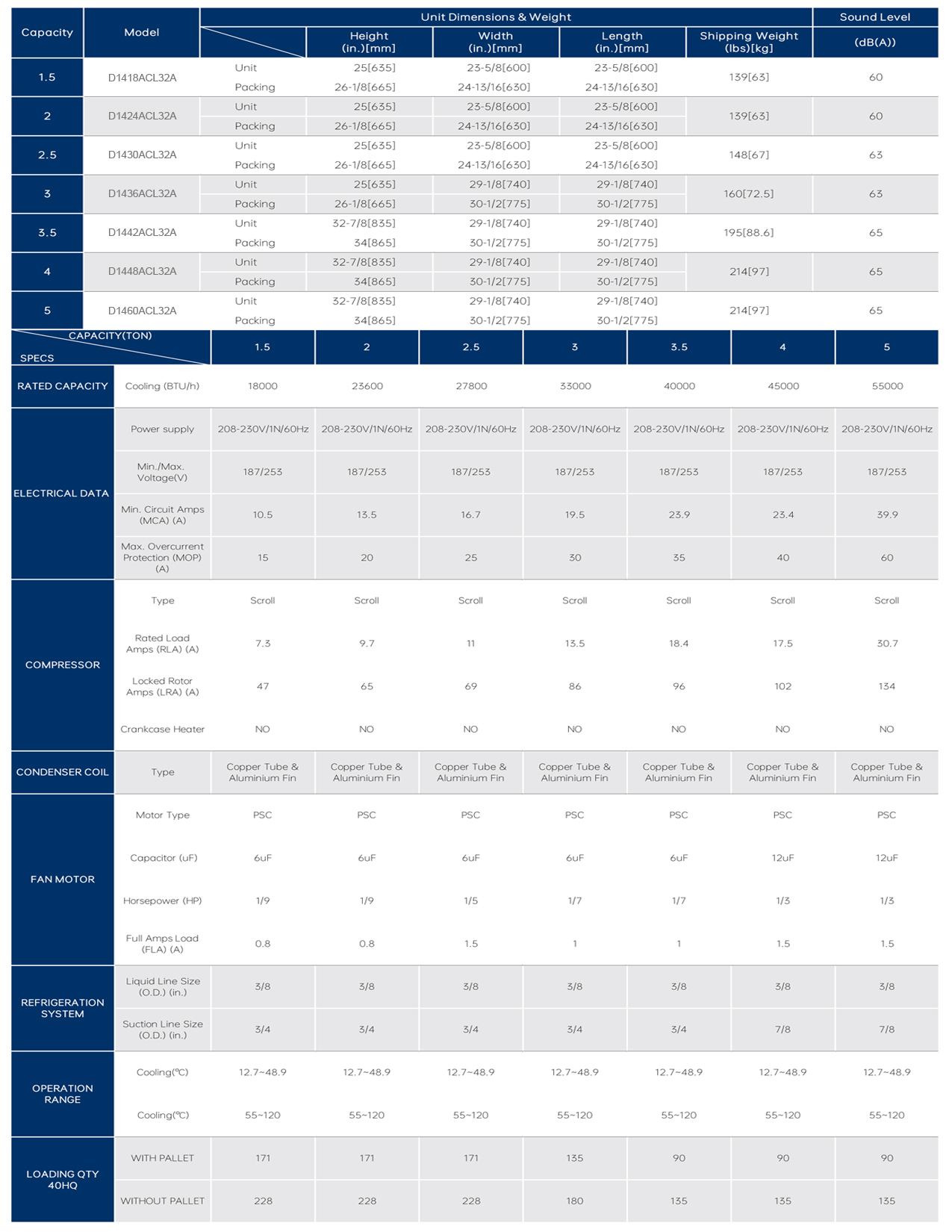 DiamondAir R32 A/C Condenser Technical Specifications