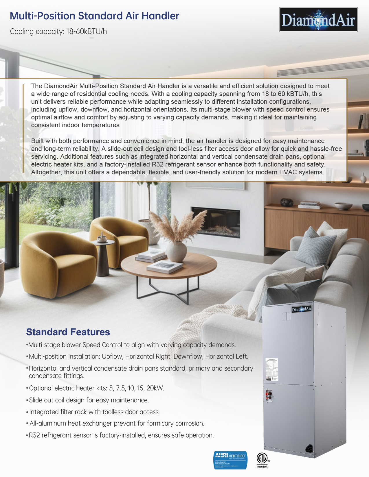 DiamondAir R32 SEER2 Air Handler Installation Manual
