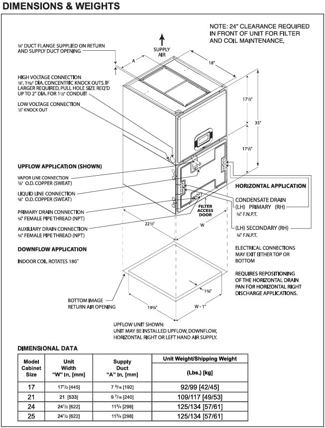 • 4-Way Field Convertible Design: vertical upflow, vertical downflow, horizontal left hand or right hand air supply