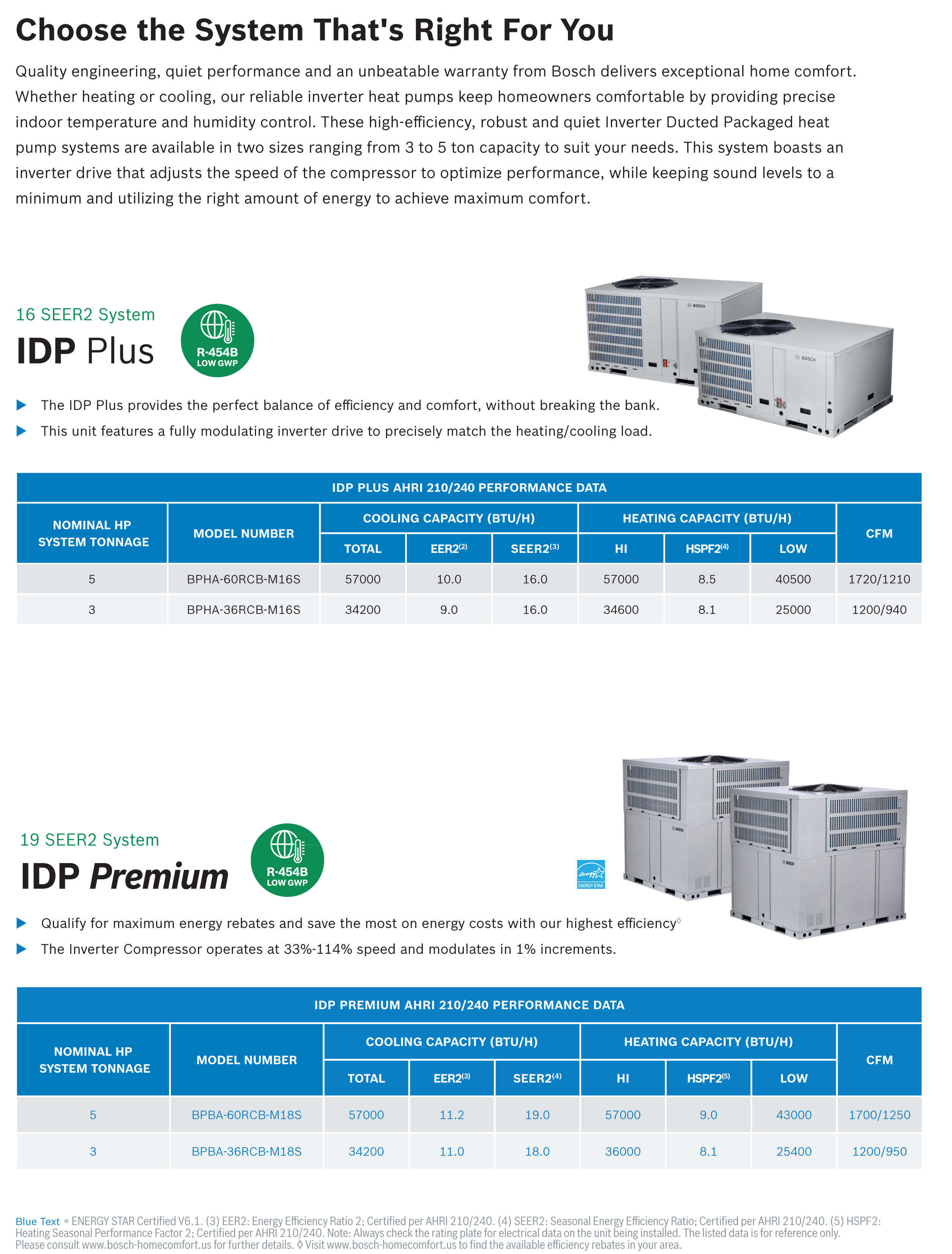 Designed for downflow or horizontal installations, this packaged system combines Bosch’s advanced inverter-driven compressor technology with environmentally friendly R454B refrigerant, delivering precise temperature control and reduced operating costs. The DC inverter compressor operates between 33% to 114% speed and modulates in 1% increments delivering unparalleled performance and efficiencies!