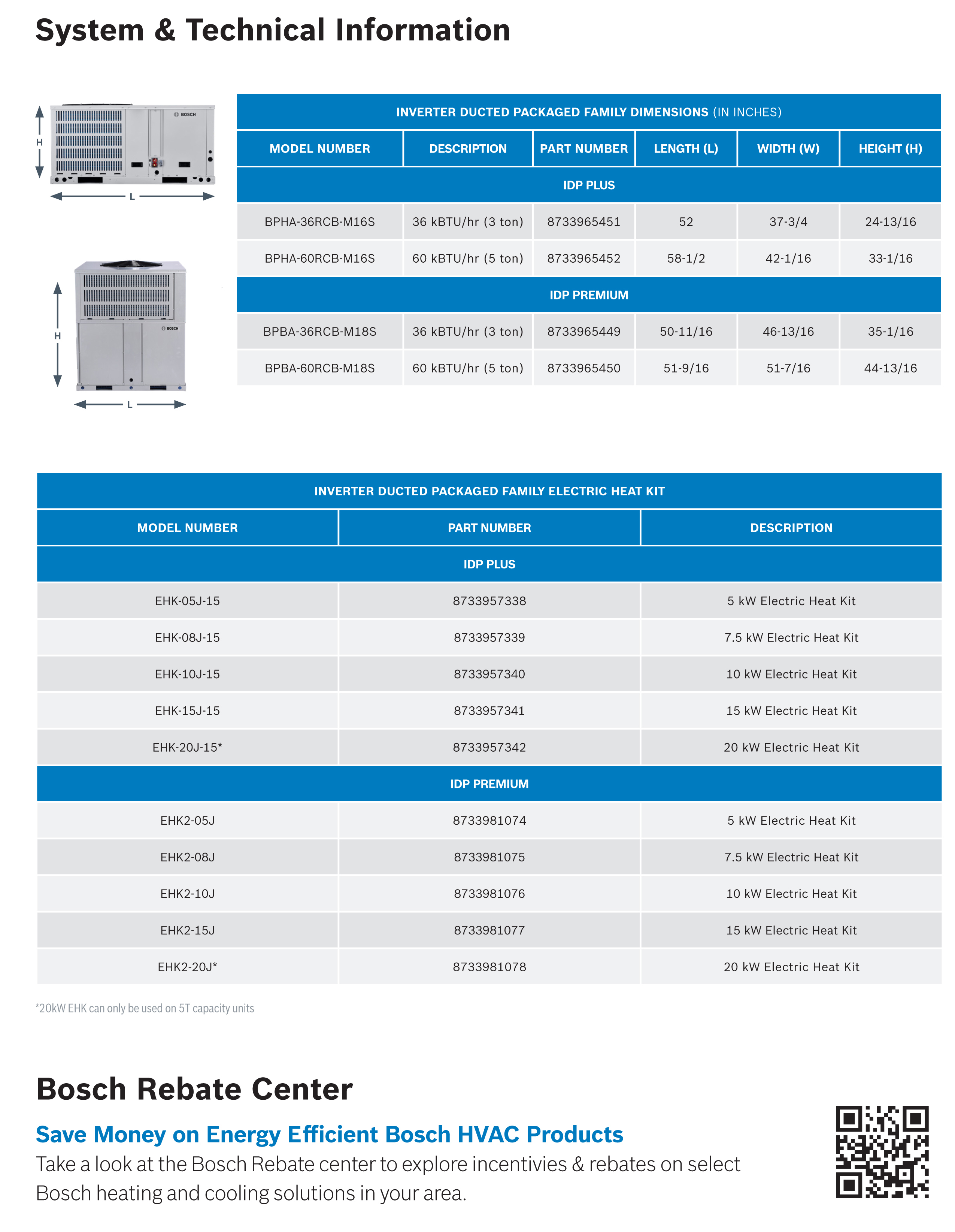 Upgrade to premium comfort, quiet operation and efficiency with the Bosch 5 Ton 19 SEER2 Inverter Heat Pump Package Unit (BPBA-60RCB-M18S) a next-generation all-in-one HVAC solution engineered for superior performance, quiet operation, and energy savings.