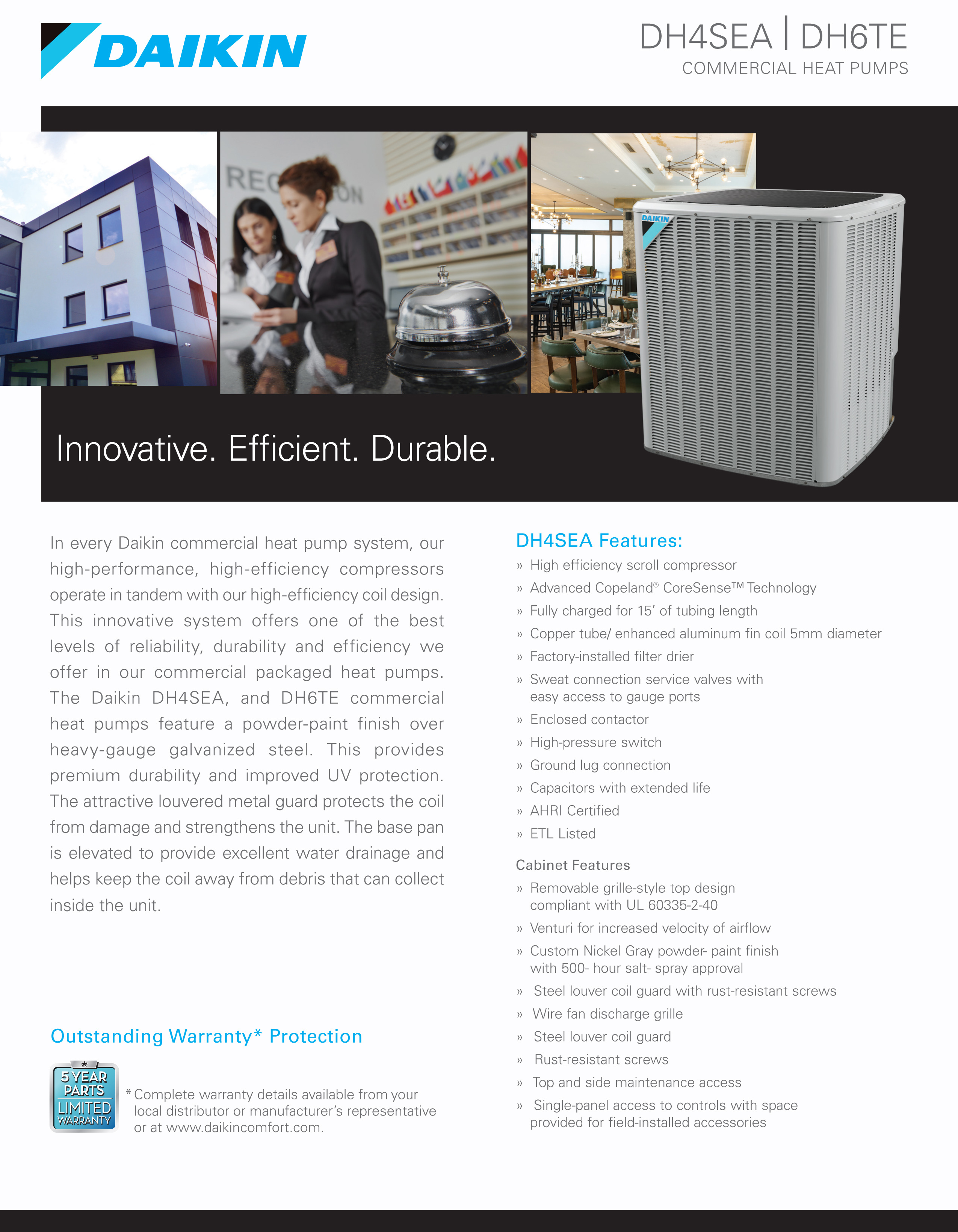 The Daikin DH4SEA3630A condenser and Goodman AMST36CU1300 air handler combine to form a high-efficiency, 3 ton HVAC system optimized for the newer R-32 refrigerant. This pairing emphasizes durability and ease of installation, featuring an all-aluminum evaporator coil, a multi-speed ECM blower motor, and a rugged SmartFrame cabinet designed with a shallow 21-inch depth for tight attic clearances. The condenser is powered by a high-efficiency Copeland scroll compressor with CoreSense technology for advanced diagnostics, while factory-installed components like the suction line accumulator and bi-flow filter drier ensure long-term reliability. With its focus on leak reduction, tool-less maintenance access, and a versatile multi-positional design, this system delivers 12.5 EER2 performance, providing a balanced solution for modern residential or commercial cooling and heating needs.