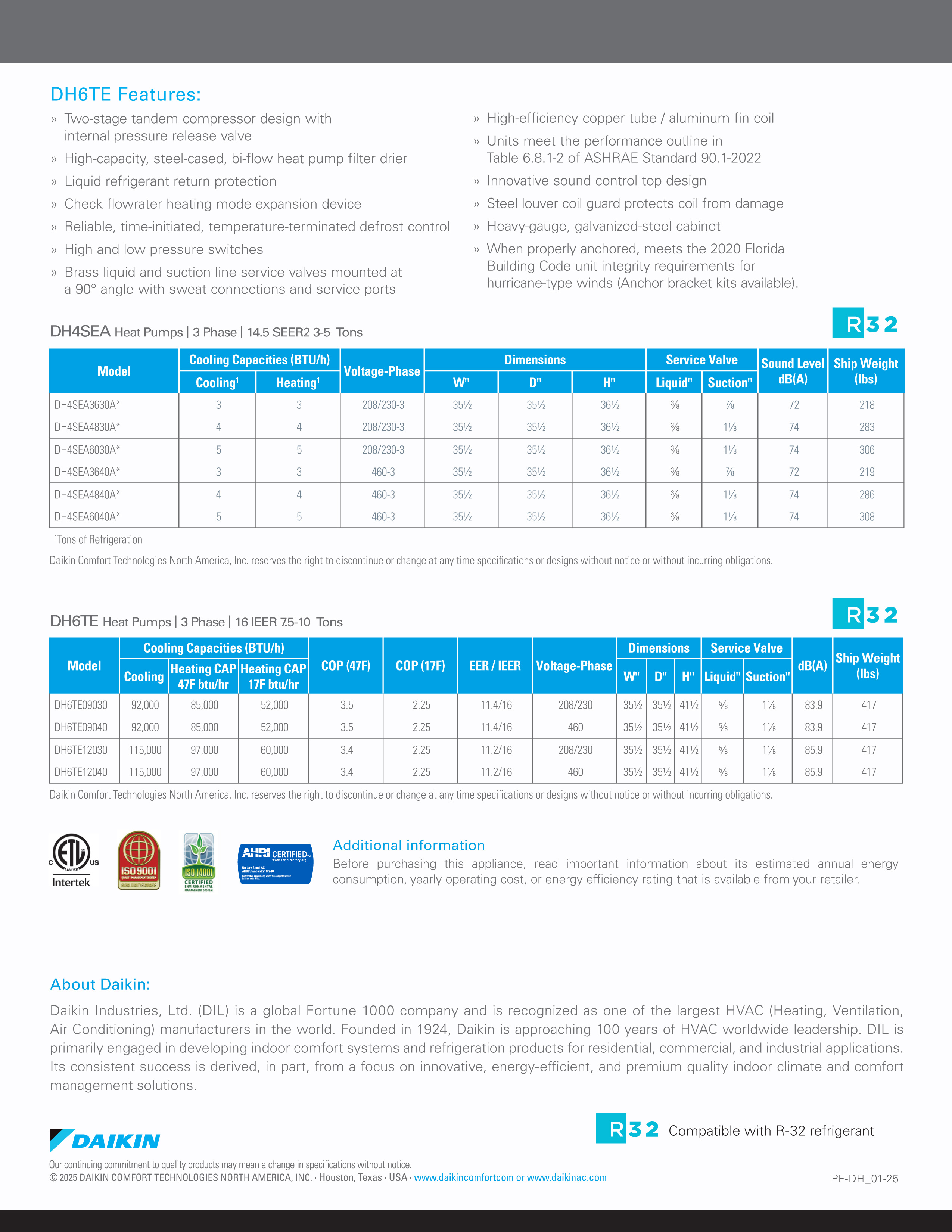 4 Ton Daikin R32 208/230V 3Ph Heat Pump Condenser, DH4SEA4830A