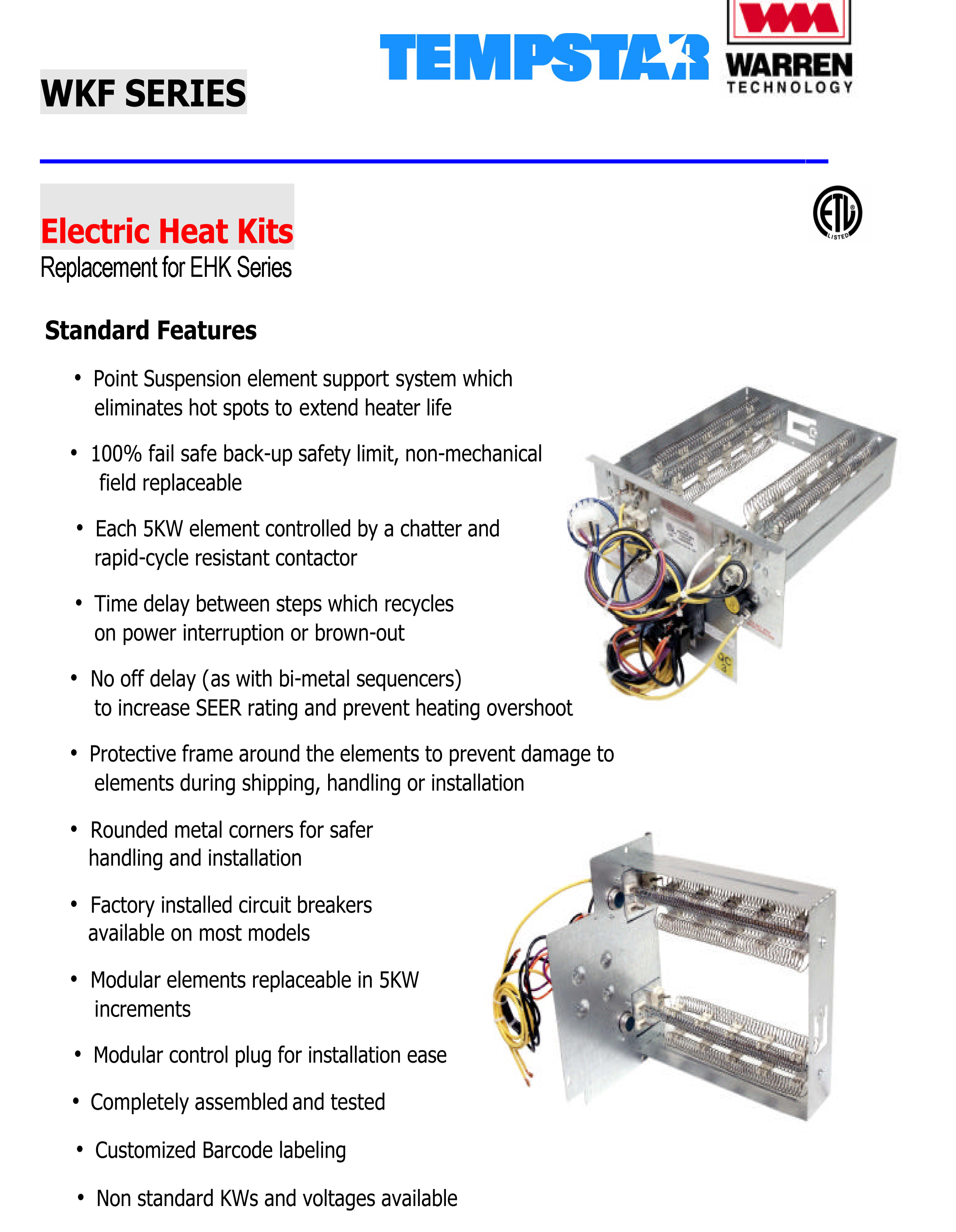 8 KW heat strip for Tempstar air handlers EB(P/X/V), WA, FE, FS, FV, FX WKF0802