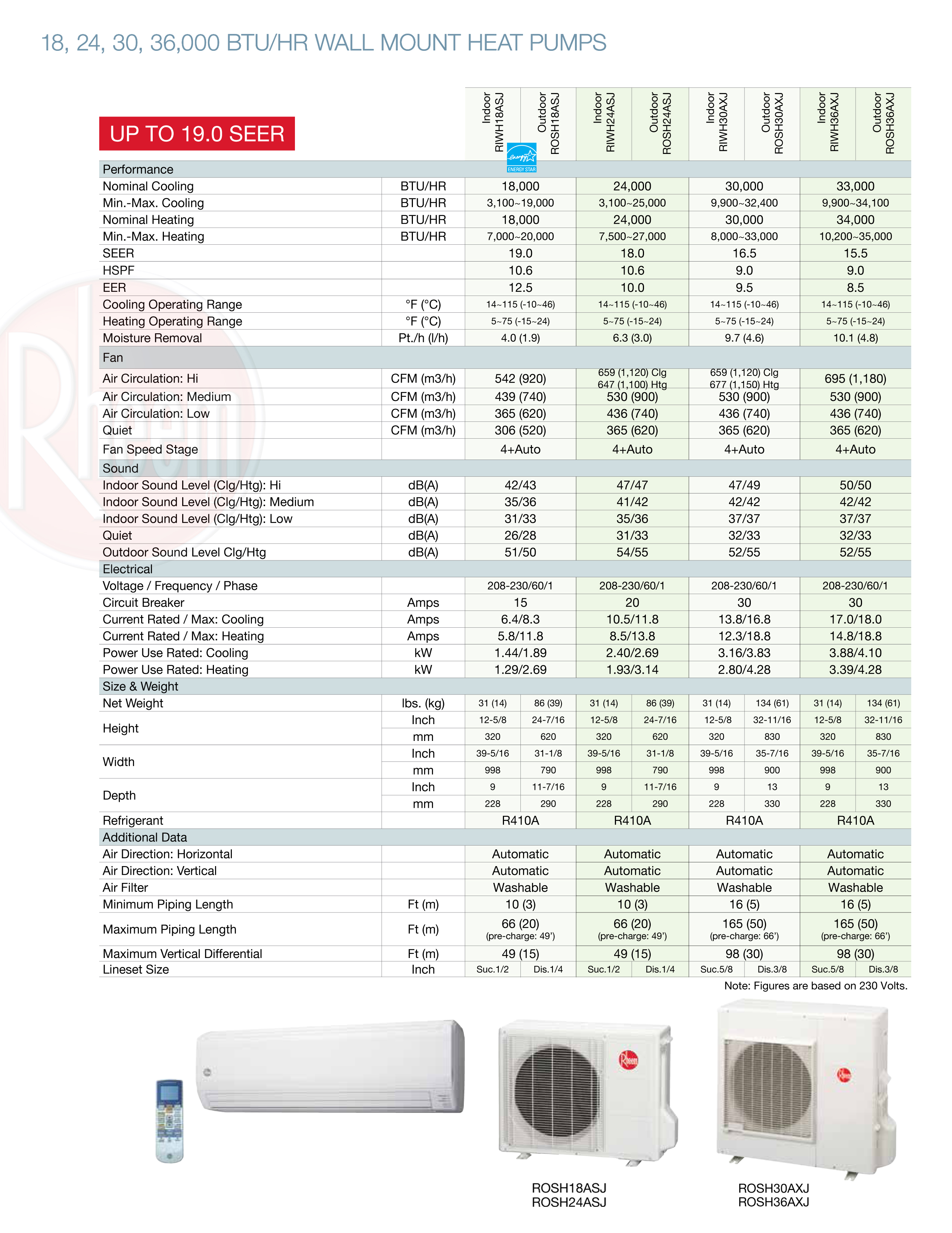 Mini Split 18,000 BTU Rheem 19 SEER Heat Pump System, RIWH18ASJ, ROSH18ASJ