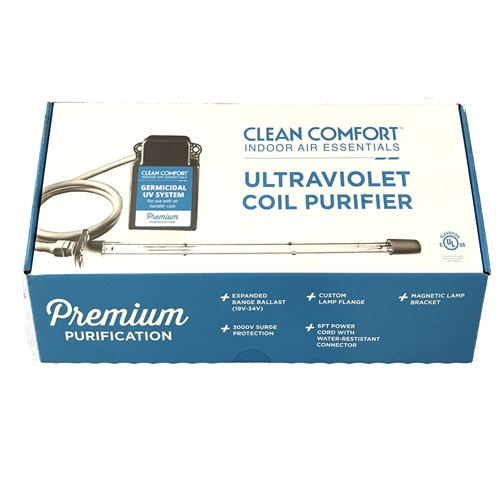 Clean Comfort? brand Premium 15" UV Light Kit comes with a magnetic bracket for ease of mounting! With a 7 year power supply and 2 year bulb warranty whats not to love?! Series Ultraviolet Coil Purifiers work to inhibit growth of microbes such as mold, bacteria and viruses on the evaporator coil of your heating and cooling system. The Premium Clean Comfort model UC18S15-24B UV light kit features a 15" Ultraviolet UV bulb Includes: Bulb, Magnetic Mounting Bracket, 24V Power Supply, UV-C Clamp, Mounting hardware, installation instructions, UV-C Safety Label for Duct